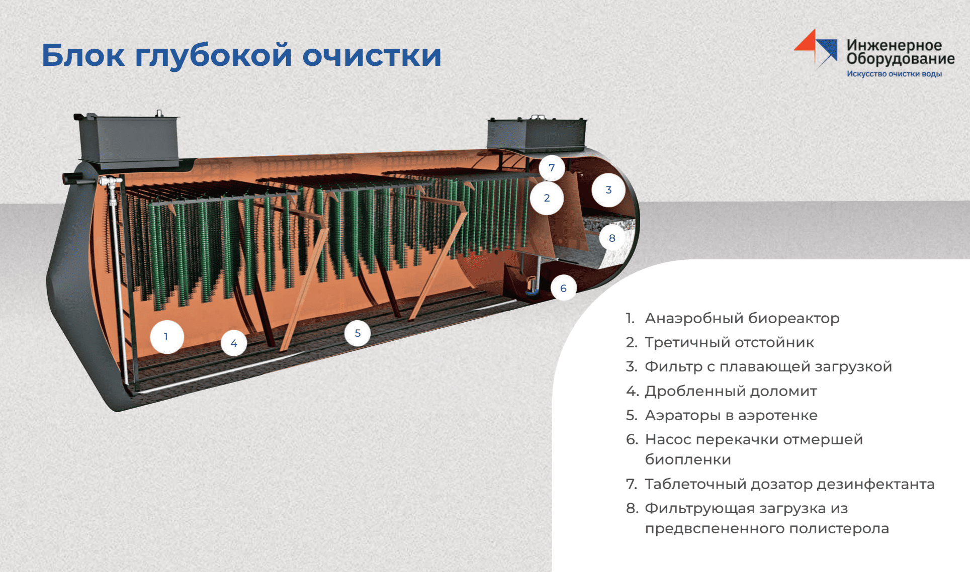 • ГЛУБОКАЯ многоступенчатая БИОЛОГИЧЕСКАЯ ОЧИСТКА с использованием иммобилизующей загрузки.