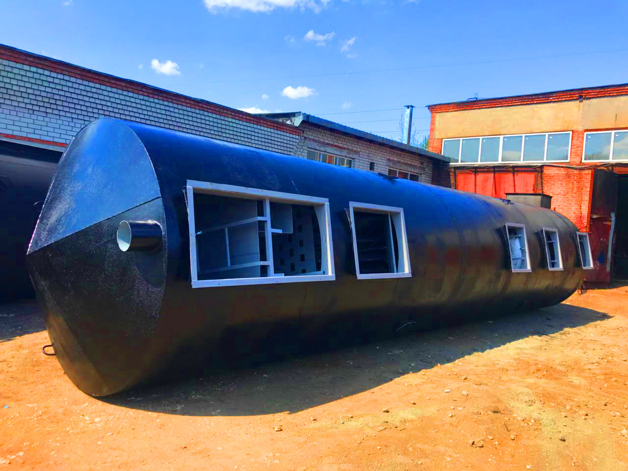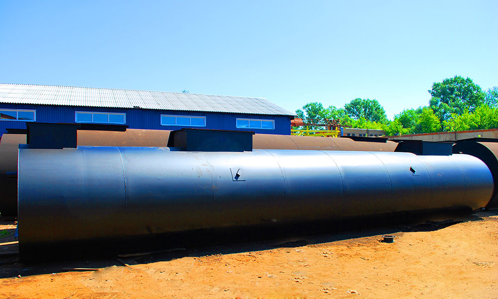 - Корпус изготовлен из низколегированной стали с многослойным антикоррозийным покрытием. Возможно изготовление из спирально-витого ПНД или стеклопластика.